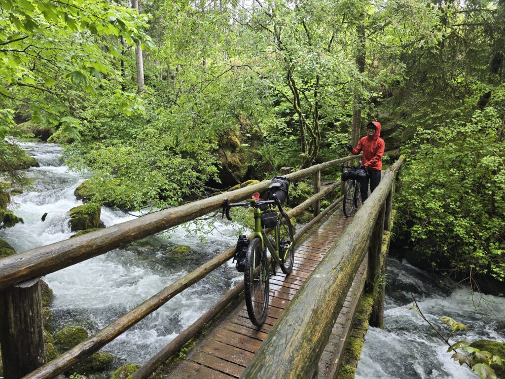 Trasa okol Drávy je vše, jen ne nudná. Uhání parádně a potkáváme pěkná místa, jako opravdu starý kostelík Filialkirche St. Magdalena am Lurnfeld, přehradu a elektrárnu Draukraftwerk Paternion, nebo zajímavý do strany prohnutý most v obci Weißenstein. Konečně si cestou také dvakrát uděláme čas na pivko, už to není jen o honění kilometrů a trpění deště. Dojde také na několik zajímavých setkání: v shuttle busu nás bylo asi jen 10, další cyklisty – absolventy Alpe Adria, potkáváme a míjíme se s tím, jak si dáváme pauzy. Potkáváme gravelistu, a když mu u nabírání vody česko-německy vysvětluji, že jsme z Česka, odpoví, že on také. Že tedy žije už roky v Rakousku a že je na pár dnů na výletě. Strávili jsme řečí pár příjemných kilometrů.
