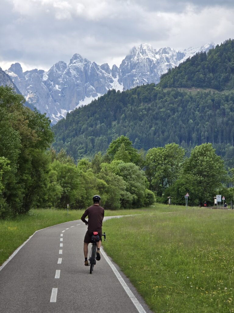 Za Werfenem pokračuje trasa po náspu řeky, přes vesnice, ale vždy mimo silniční provoz, takže je trasa velmi bezpečná. Přestože jedete stále proti proudu řeky Salzy, v podstatě jedete po rovině a výškové metry přibývají pozvolna. Na gravelu se dá upalovat hezky rychlostí okolo 25 km/h.
