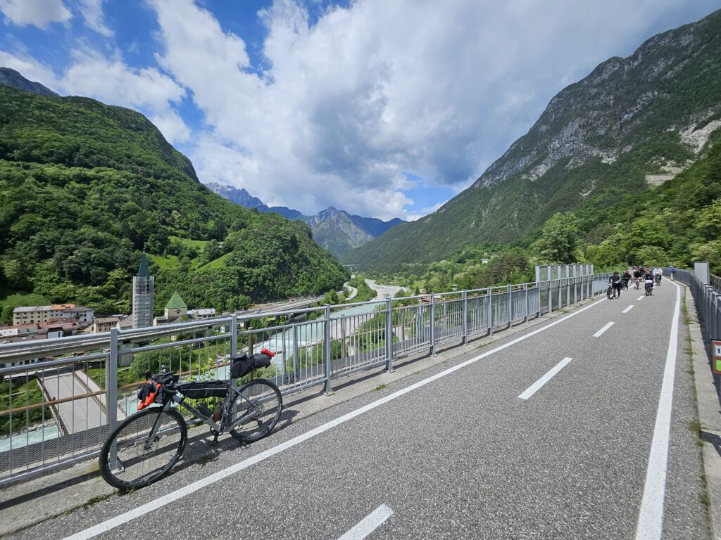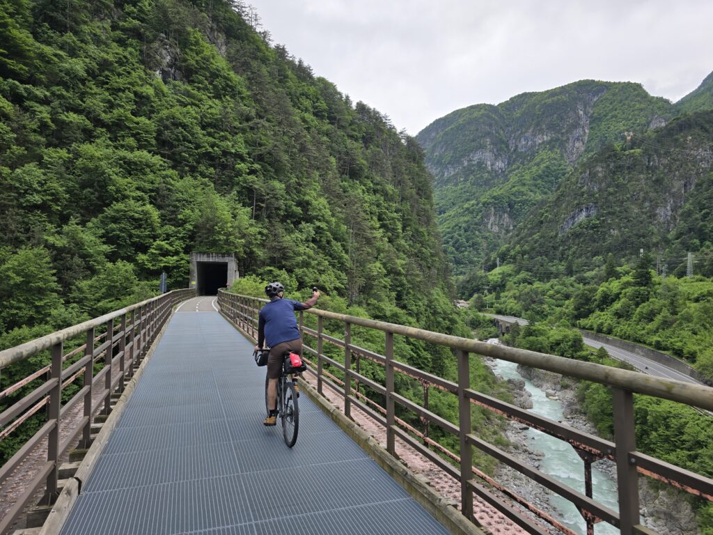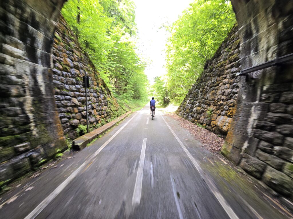 Charakter trasy je prostý: nejprve trať mírně stoupá, proto vám možná přijde, že jedete pomaleji, než by bylo záhodno. Brzy se ale zlomí a pak už čeká nekonečné klesání, kde budete jen motat nohy, a přesto pofrčíte rychlostí okolo pětadvacítky. Na trati je spousta krásných, ikonických míst a výhledů. Třeba jako ohromující, dlouhý a vysoký most nad obcí Dogna, vodopády Cascata Cadramazzo, staré zaniklé nádražní budovy a spousta nekonečných tunelů i dlouhých mostů. Vždy smeknete před umem stavitelů, zejména s ohledem na soudobou techniku.