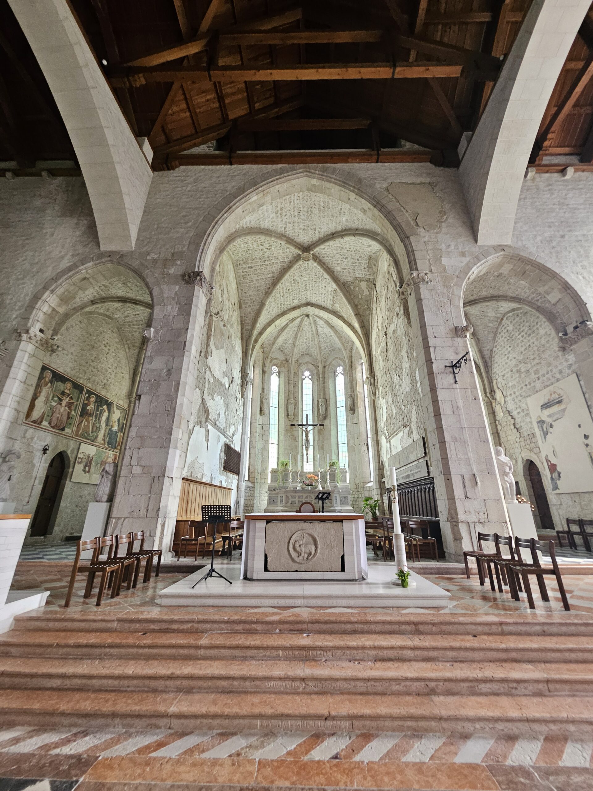 Na chvilku se zastavujeme u kostela v obci Tavagnacco, právě probíhá mše a opatrně a potichu nahlédneme dovnitř. Mše v italštině má něco do sebe a na rozdíl od českých kostelů jsou zde hojně navštěvovány, i v takové malé obci.