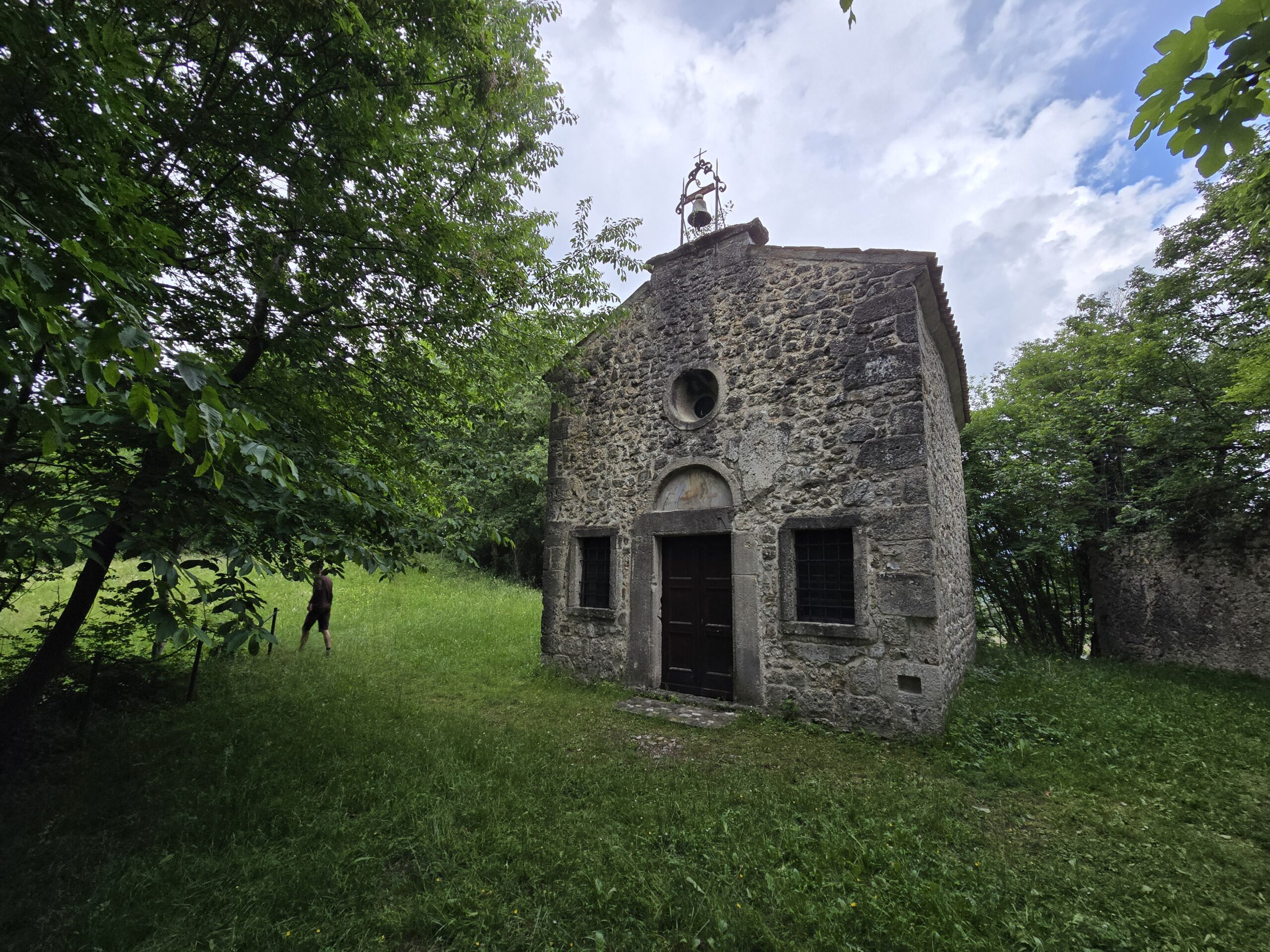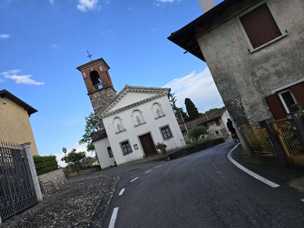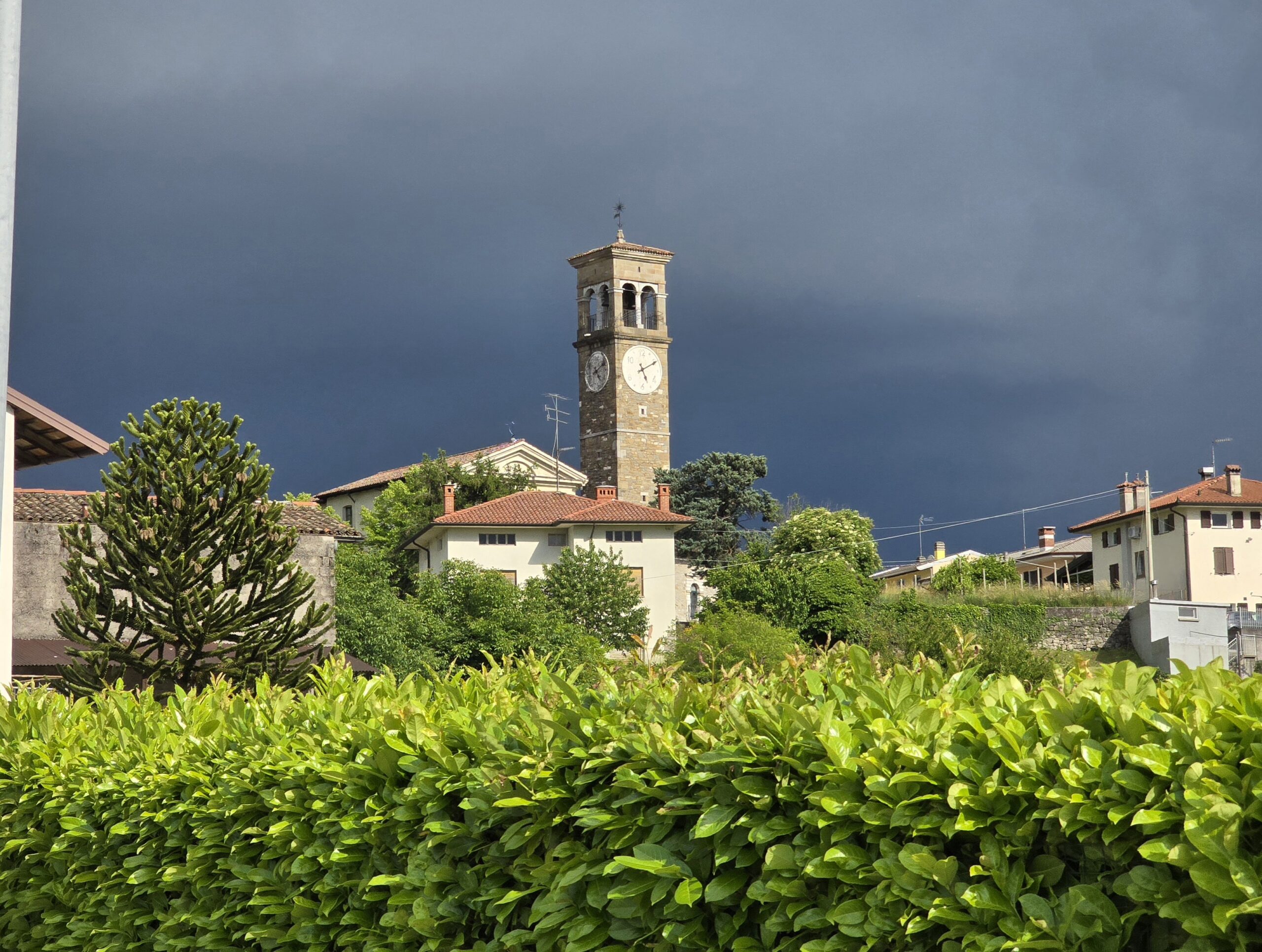 Trasa do Udine už mírně mění charakter, místo vymazlené cyklotrasy využívá místní komunikace a cesty s hrubší šotolinou, zde by to na silničce vážně nešlo. Chceme navštívit malou kapli Sv. Rocca, špatně ale odbočujeme a trošku si zajedeme. V dáli také vidíme bouřku s nemalými blesky a hromy, která ale naštěstí svižně postupuje přes místa, kudy máme jet. Rozhodnutí je prosté, najdeme první hospodu po cestě a dáme si v klidu pivko a něco malého. Jenže to není tak úplně snadné, ne v odpoledních hodinách siesty, a tak musíme ještě popojet. Ale daří se a po pivu si ještě zajdeme na zmrzlinu, to jen pro jistotu, a pokračujeme po čerstvě popršených místech…