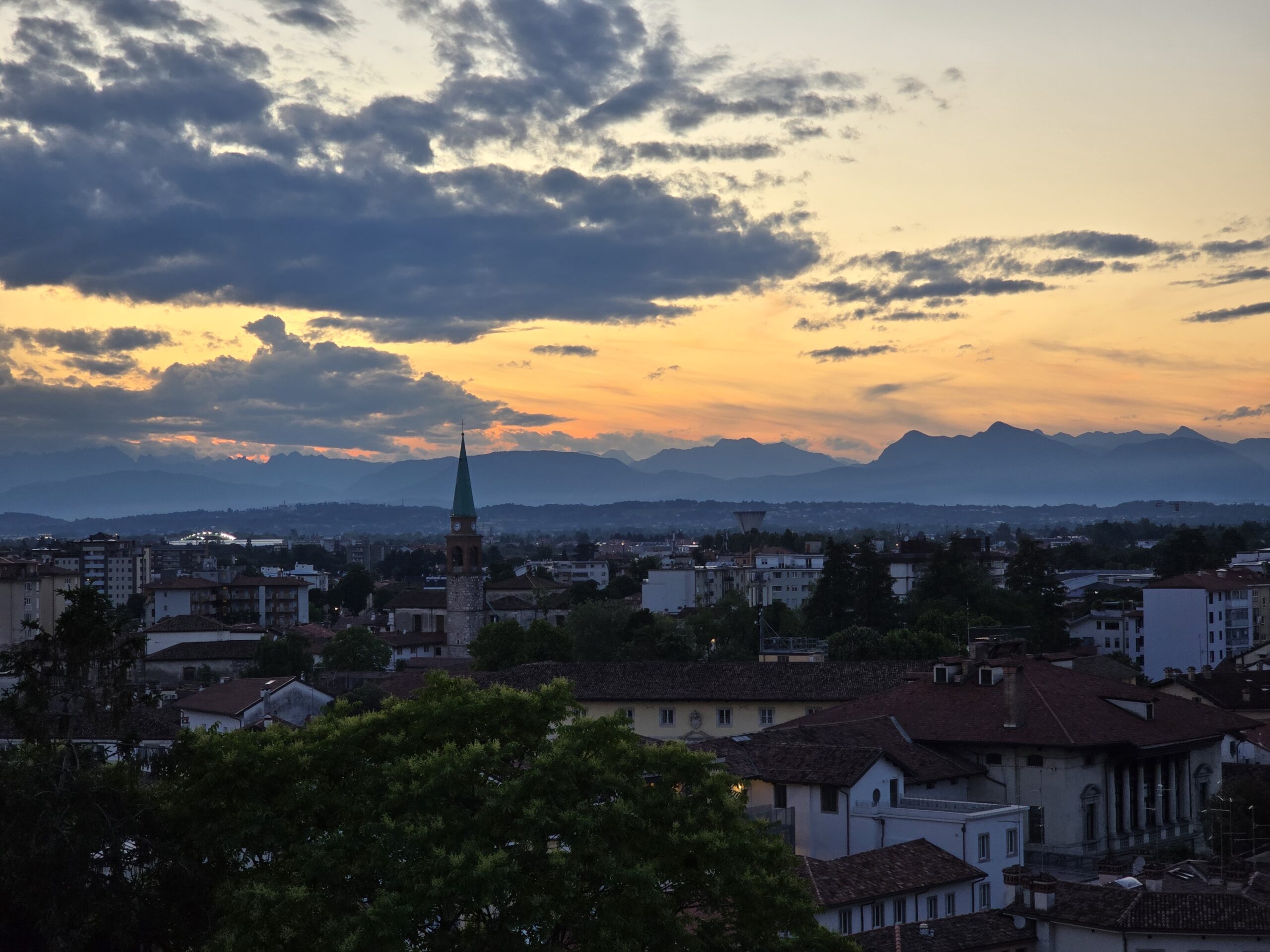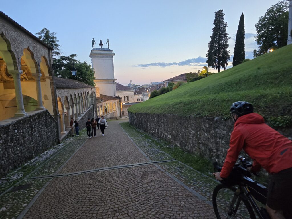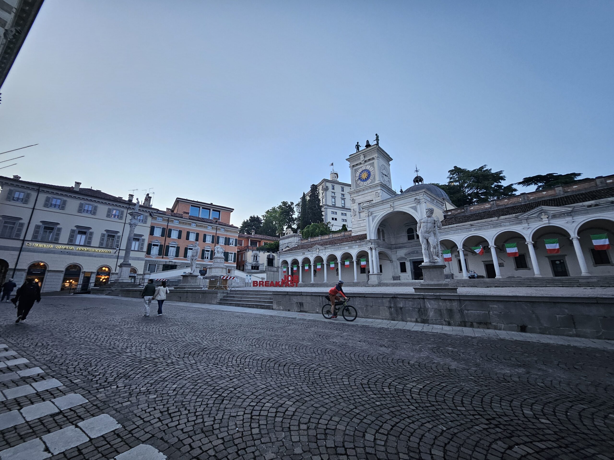 Zbývá posledních pár kilometrů do Udine, kam přijíždíme se západem slunce. Proplétáme se uličkami a dorazíme do centra, kde si vyšlápneme okolo krásné Porticato del Lippomano na Piazzale del Castello s krásným výhledem na Udine a celé okolí.