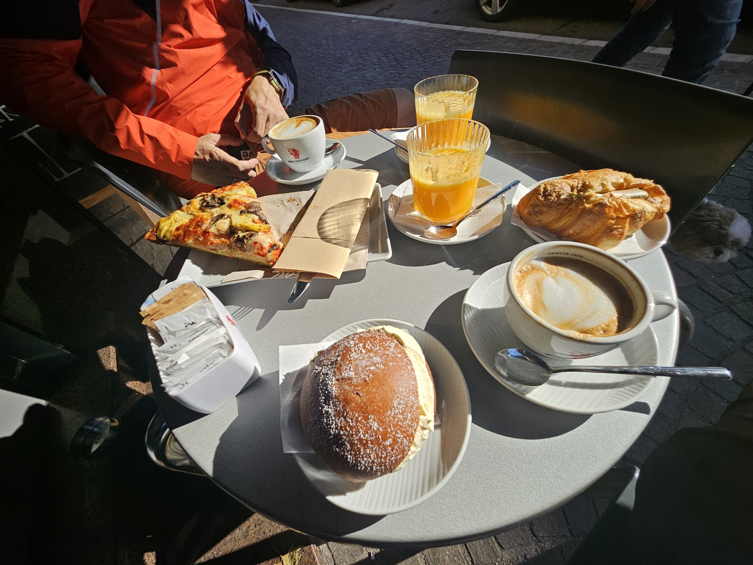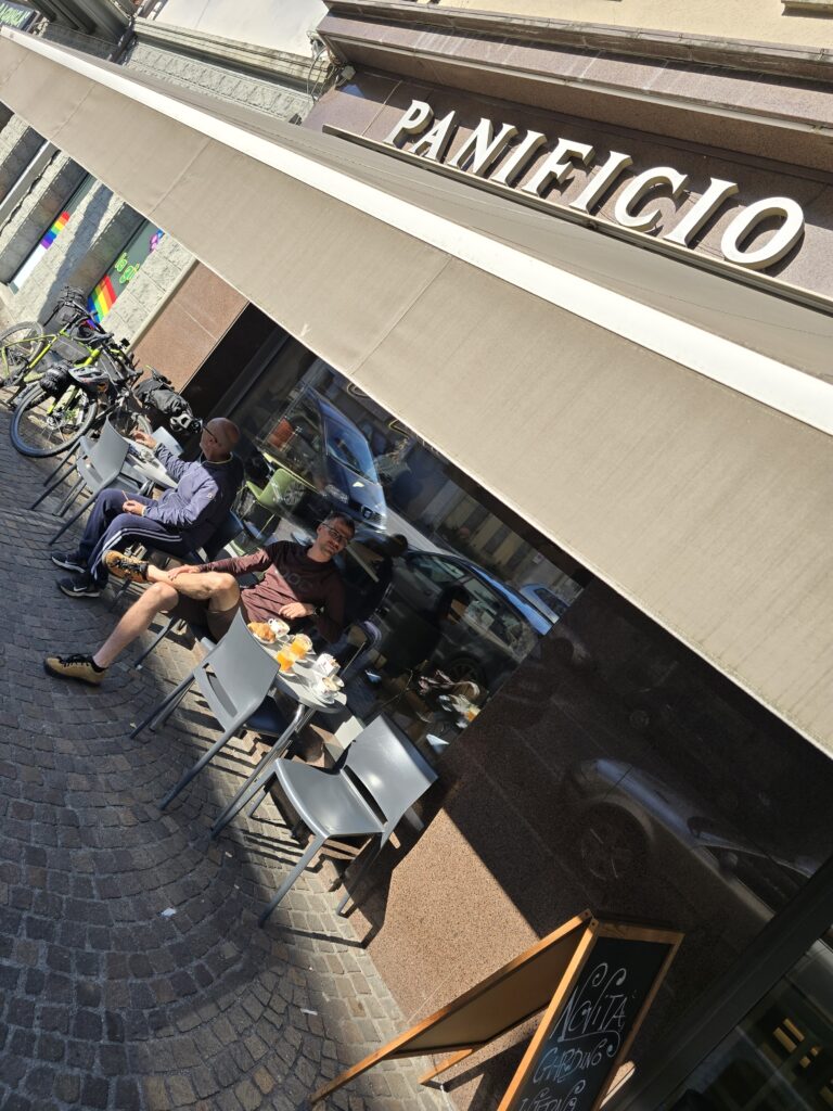 Ráno jsme se nezdržovali, našli jsme kola ve stavu, v jakém jsme je opustili, a zavítali hned do vedlejší cukrárny na snídani s kávičkou, croissanty plněnými pistáciovým krémem a dalšími dobrotami. Italové tyto cukrárny zkrátka umí a vybrat si byl fakt problém.