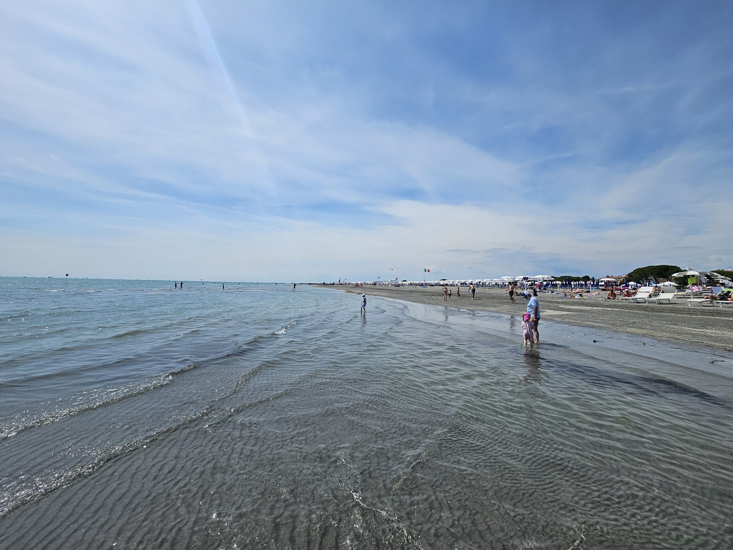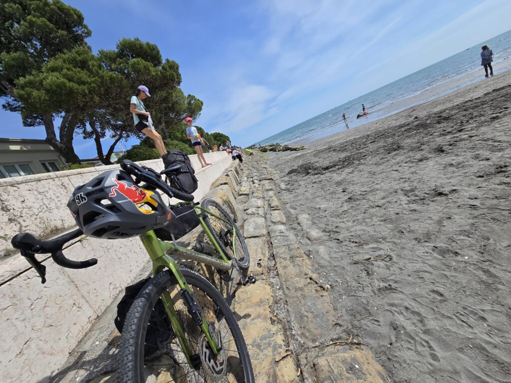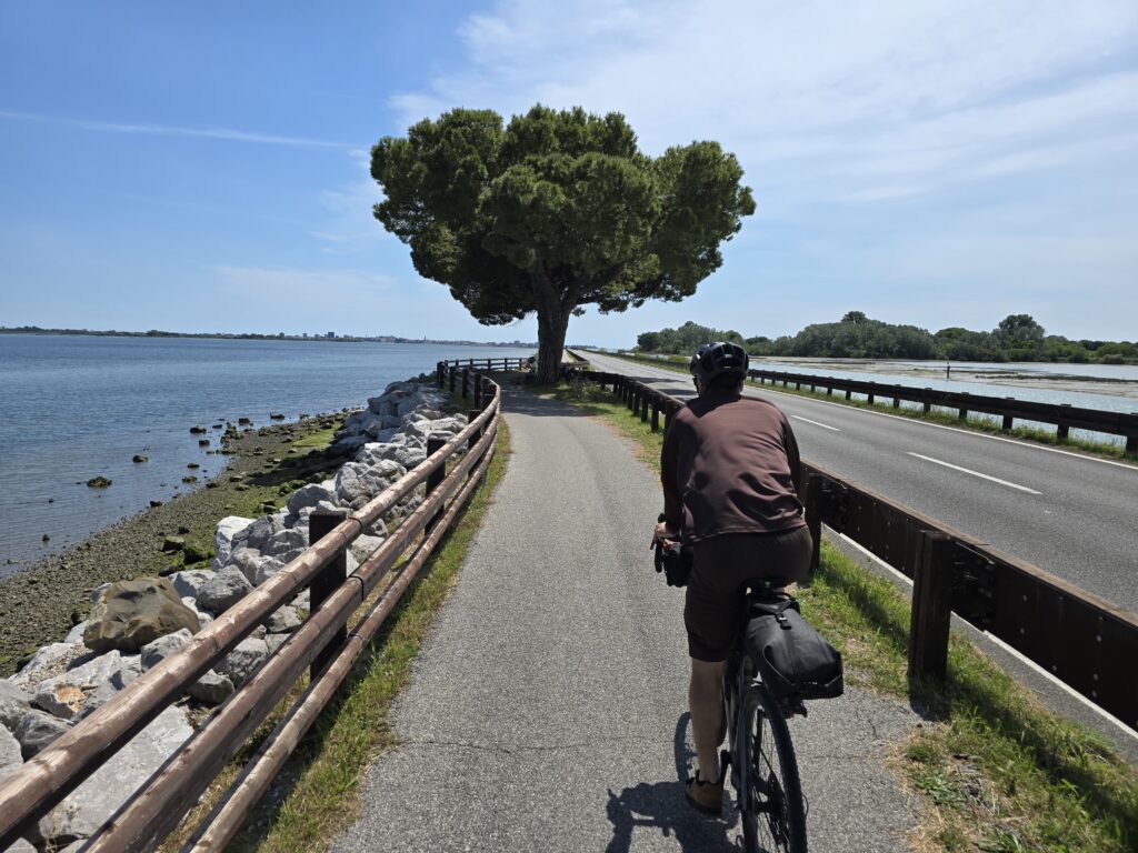 Zbývalo doslova pár kilometrů do Grada: cyklistů začalo přibývat s rostoucí intenzitou slané vůně moře. V Grado nás překvapilo ohromné množství turistů, už takto koncem května. Vysnili jsme si, že zde David pohodlně zaparkuje u pláže, najdeme pěknou restauraci s rybíma potvorama, najíme se a vyrazíme dolů.