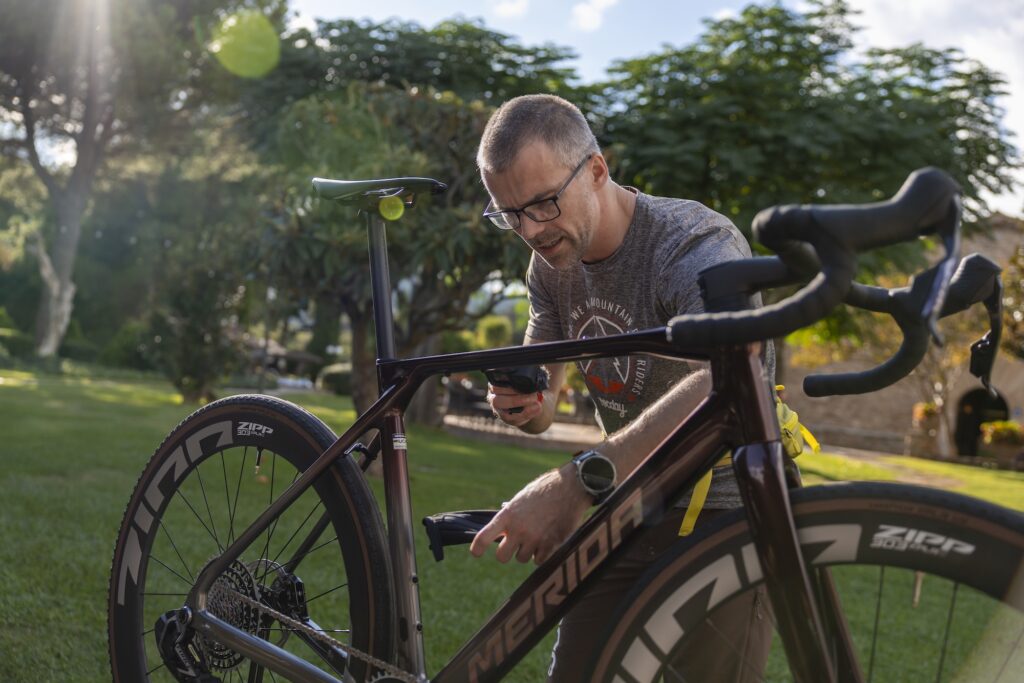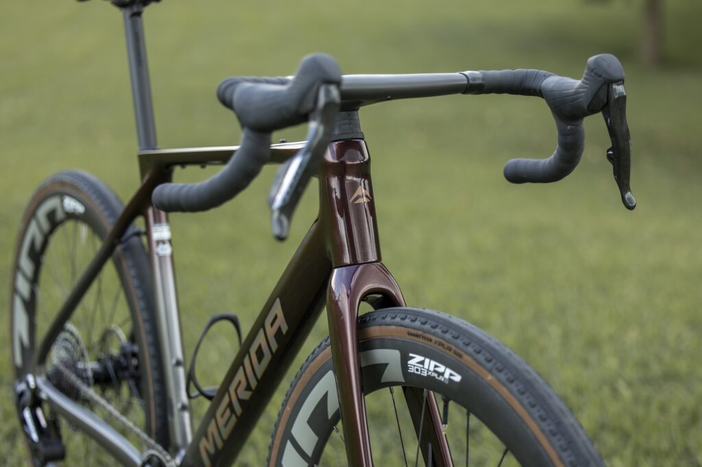 Z celkové koncepce je zřejmé, že Mission se o něco více hodí na silnici než do terénu. A to tím víc, čím dražší model zvolíte. Nižší modely jsou postaveny na klasických nízkých hliníkových zápletech DT-Swiss G 1800 a obouvají hrubší pláště Continental Terra Speed ProTection. Modely 9000 a 10 000 osloví cyklisty, kteří vědí, že na asfaltu stráví výrazně nadpoloviční dobu jízdy. Zde totiž ocení nejen fantastické vysoké aero záplety Zipp 303 XPLR S (váží 1610 g), ale i obuté pláště Goodyear XPLR Slick a kompletně karbonový a „silničkářsky“ úzký aero-kokpit od Meridy. Tyhle ingredience stačí k tomu, abyste na silnici jasně pocítili rozdíl v setrvačnosti a znatelně menší námaze, a to i ve srovnání s nižšími řadami Missionu. Naopak kolegové na nižších modelech si byli výrazně jistější v terénu a ve sjezdech a upřímně, o své záplety se v hrubším terénu, o který nebylo okolo Girony po vydatných deštích nouze, tolik bát.