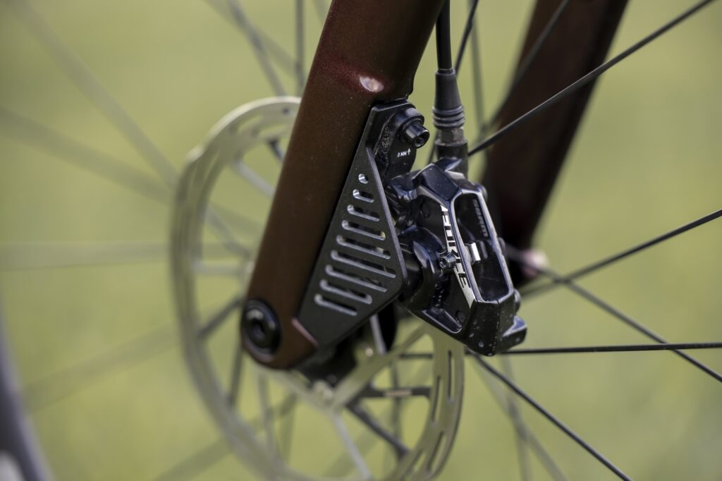 Ačkoli bývá na brzdy SRAM ze světa MTB spíše spíláno, a respektovány jsou až MAVENy, AXSka na gravelech fungují naprosto skvěle. Osobně oceňuji, že brzdové páky slouží výhradně k brždění a páky pro řazení jsou až pod nimi. Vyhovuje mi to víc, než GRX od Shimana, kde se řazení provádí pohybem brzdové páky do stran. Merida na všechny modely osadila kotouče o průměru 160 mm, a ač u Silexů dává i 180 mm, nemyslím, že by to bylo potřeba. Mission si nebudou kupovat ti, kdo na kolo naloží 20 kg výbavy, aby pak sjížděli 20km dlouhá sedla v Aplách, a – omluvte mne – ale velmi pravděpodobně si jej nekoupí ani ti s výrazně nadmetráčkovou tělesnou hmotností. Nicméně možnost upgradu na průměr 180 mm existuje, stačí přidat podložky a kotouče povýšit. Třeba kotouče pro gravel od Galferu.